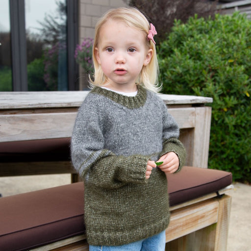 ChaskaWell this little cutie looks like she may have borrowed from a big sister or brother to model this design for us. Simple, raglan jumper with crew n...