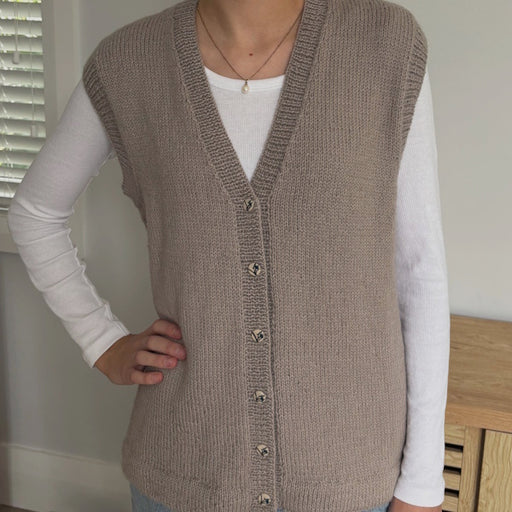 ChaskaClassic, V neck, button through Vest. Great for work or everyday. Knitted in luxurious Muhu alpaca 8ply by Chaska of Peru.