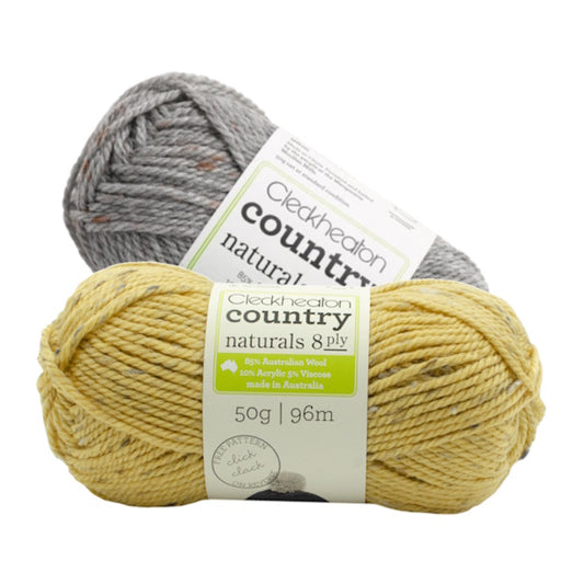 CleckheatonCountry Naturals 8 ply is a soft tweed yarn made from a blend of Australian wool, acrylic and viscose. It is machine washable with flecks of colour...